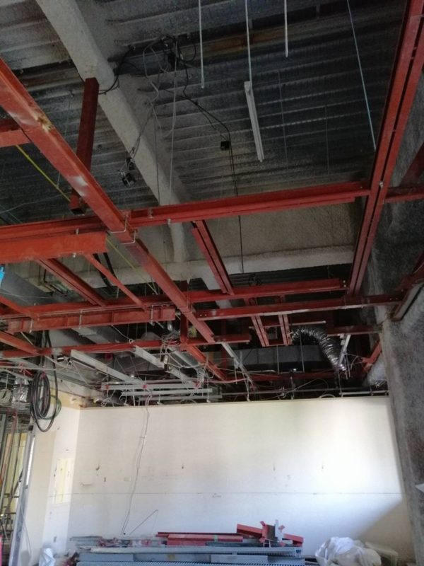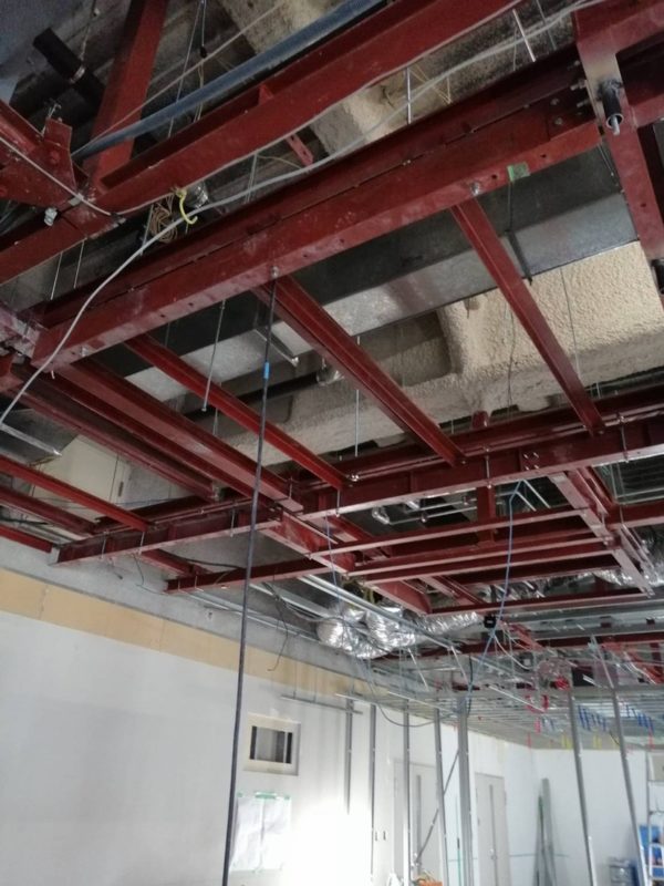 この赤色の鉄骨が、当社が組み立てた部分です。